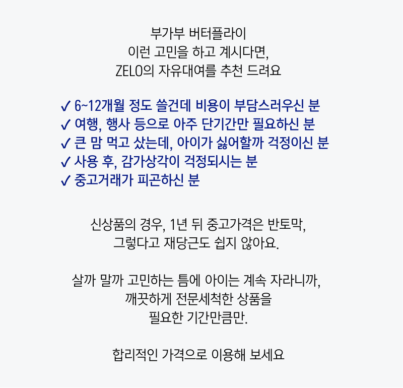 우리 아이가 타는 유모차 만큼은 가장 좋은 제품으로 해주고싶죠 고가의 부가부 유모차를 합리적인 이용료로, 딱 필요한 기간만큼 대여하세요!