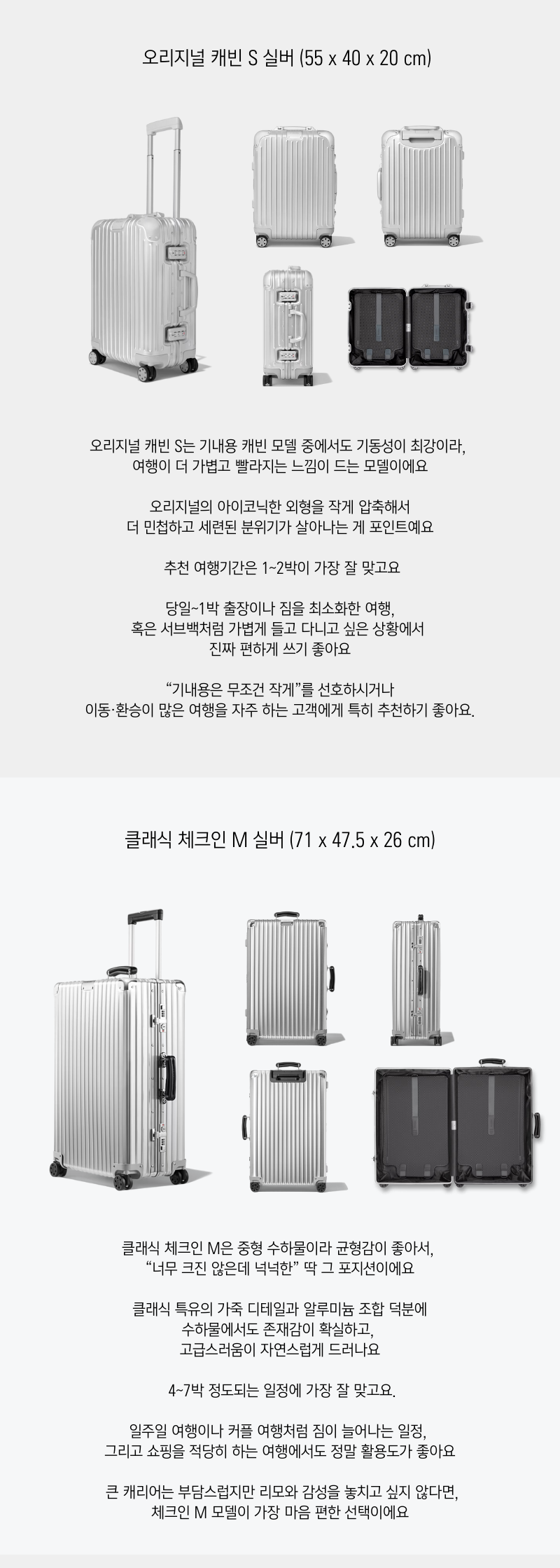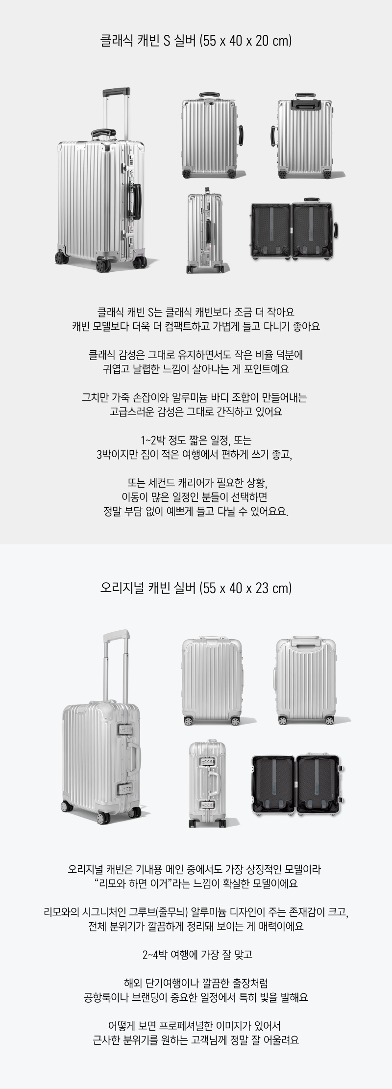 1년에 몇 번 안가는 여행 때문에 비싼 캐리어를 구매하기엔 부담스럽죠. 2-3일 정도의 단기 여행 혹은 출장에는 리모와 클래식 캐빈과 함께하세요.